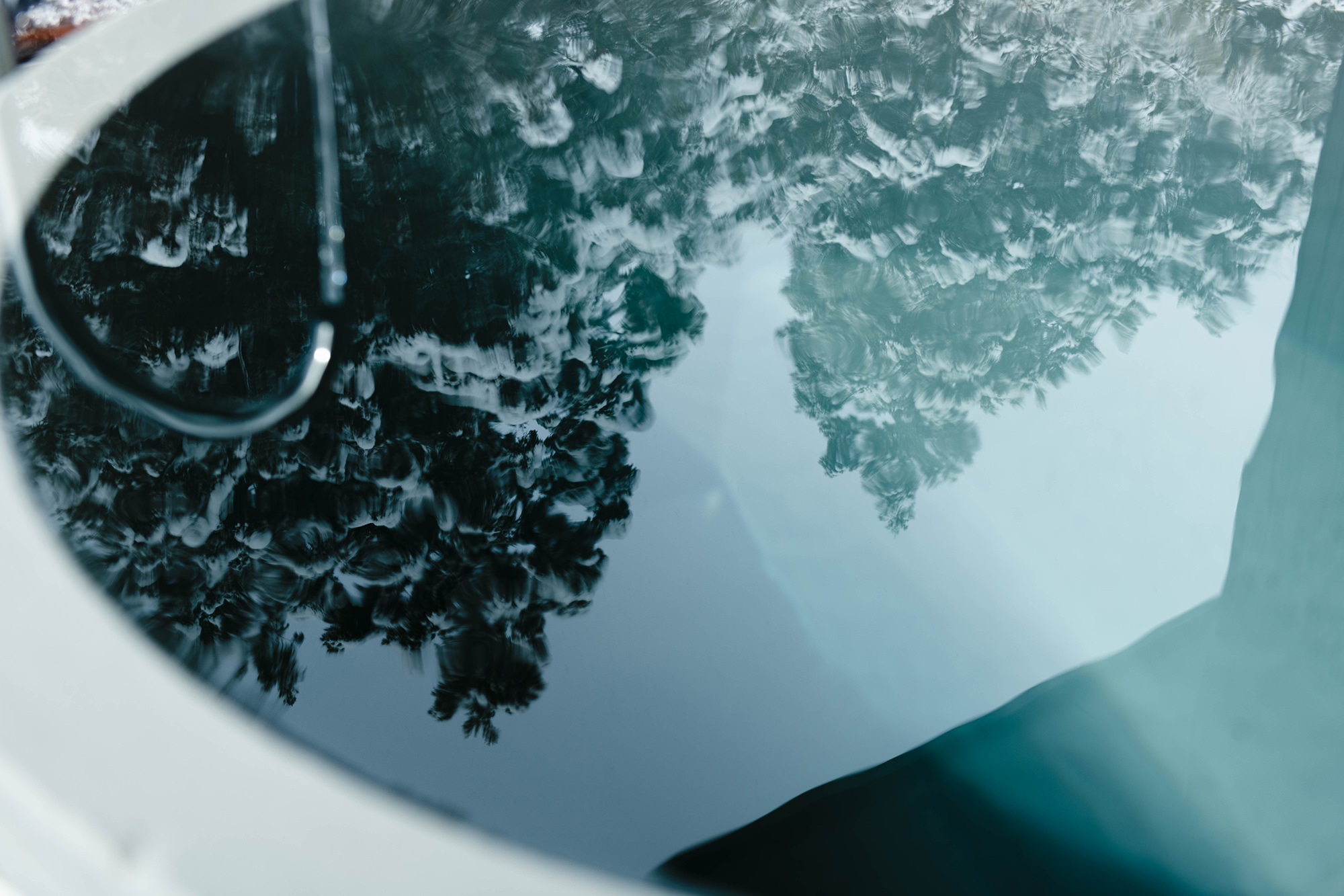 康美青の錆石を活かした、ゆったりと寛げる湯の時間。肩までじっくりと浸かれば、石が蓄えた穏やかな熱が全身を包み込み、心までほぐれていく。静かに湯の波紋が広がる中、ゆったりと息を整えながら、滝ヶ原の静寂に身をゆだねる贅沢なひととき。